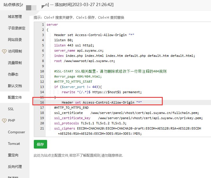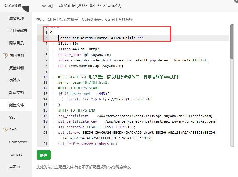 打开网站的设置,找到配置文件,添加如下代码