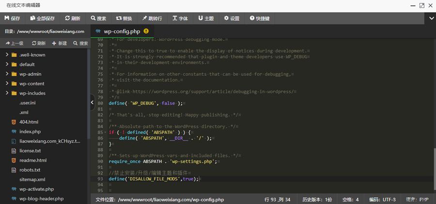 将以下代码添加到站点根目录下的wp-config.php文件中: